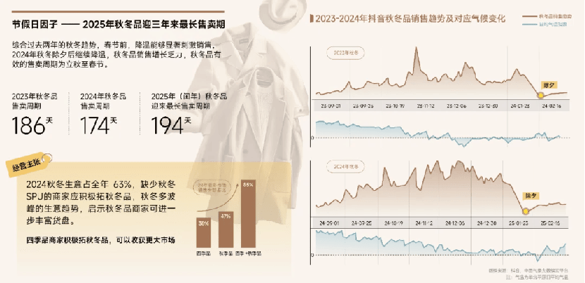 气候因素也为秋冬新品销售带来了“物理加成”。极端天气频发,秋冬气温波动大,形成了多个销售高峰。2025年为闰年,从立秋到除夕共有194天,成为近年来最长的秋冬销售窗口,为商家提供了更多的节奏控制空间。
