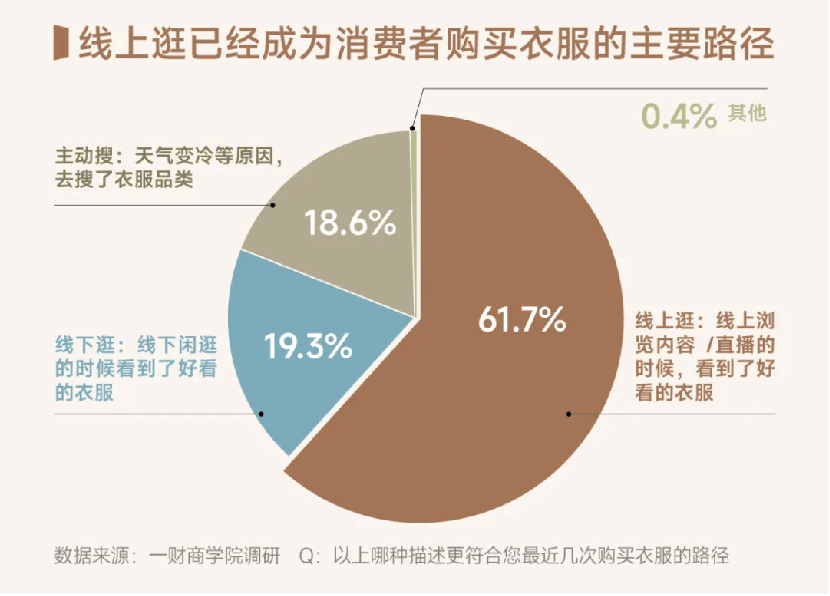 线上内容消费已成为服饰交易的核心入口。调研显示,超过六成的消费者在购买服装时会依赖内容种草。抖音平台上,每天有90亿次服饰相关内容被消费,这一趋势直接推动了交易转化。2024年,抖音贡献了服饰线上零售增量的74%,成为行业增长的主要驱动力。