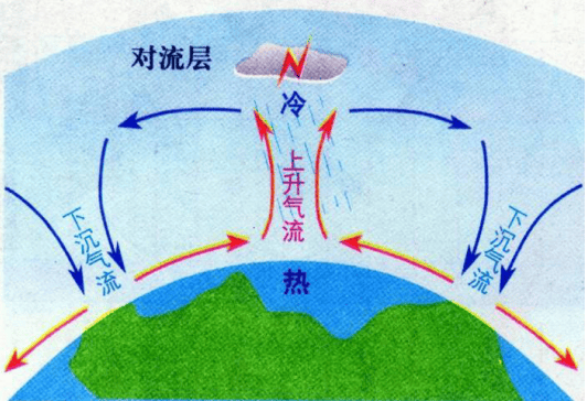 对流层的显著特征之一是以垂直对流运动为主,这种运动主要由地面受热不均引起。受热多的地区空气膨胀上升,形成低压,而受热少的地区空气收缩下沉,形成高压,从而在垂直方向上产生强烈的对流。这种对流运动不仅影响着大气的稳定性,还是云、雨、雪、雷电等天气现象产生的主要原因。