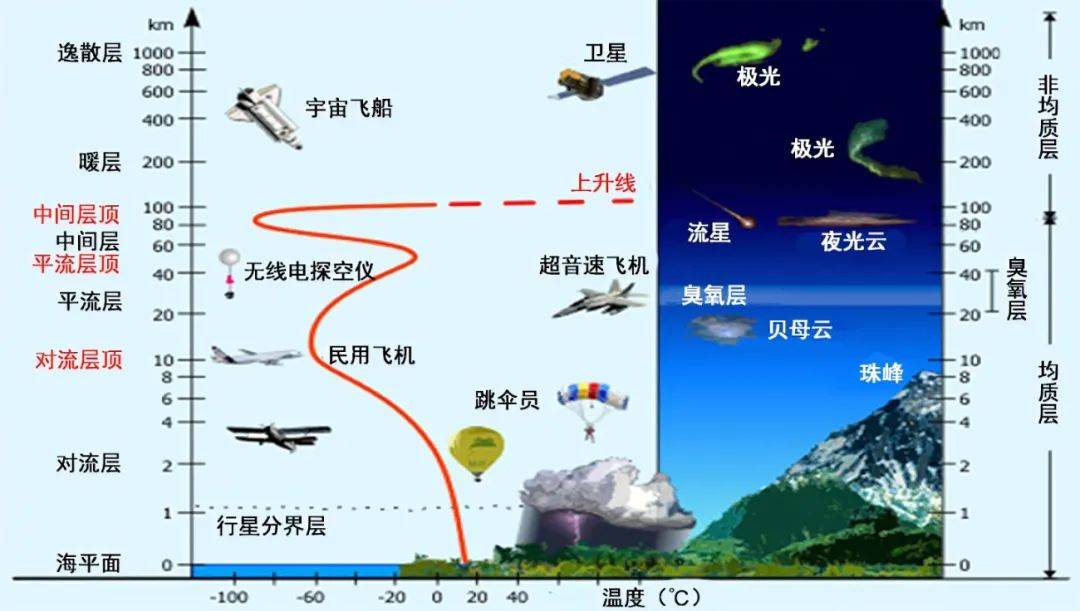 气温的垂直分布是对流层的一个重要特征。随着高度的增加,气温逐渐降低,平均而言,每升高100米,气温下降约0.6°C。然而,在某些特殊条件下,对流层中也会出现逆温现象,即气温随高度升高而升高,这一现象对大气稳定性和污染物扩散有着重要影响。