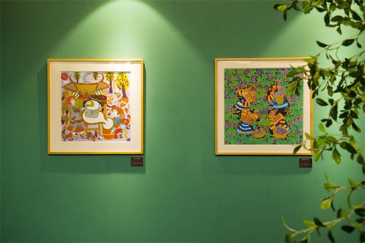 水城农民画的足迹已经遍布国内外多个城市,从巴黎市政厅的首秀到加拿大温哥华、日本东京的展览,再到北京、上海、深圳等地的文化交流,水城农民画已成为展现中华文化多元共生的重要窗口。随着知名度的不断提升,水城农民画的市场化发展之路也愈发清晰。线下,以贵州夜郎风文化有限公司为代表的企业,通过与本土品牌合作推出特色包装、开设农民画艺术餐厅、文化体验店和主题民宿等方式,不断拓展着农民画的应用场景。线上,水城农民画也在积极探索数字形式的创新,NFT作品、动画、表情包等新媒体产品的推出,让这门传统艺术焕发出了新的生机。