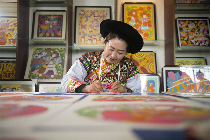 熊兴美的故事,是水城农民画在当地生根发芽、融入日常的生动写照。她从小跟着母亲学习挑花刺绣,后来因偶然机会接触到了农民画,从此便与这门艺术结下了不解之缘。如今,她不仅能忙完农活后用画笔记录生活点滴,还能通过接订单增加收入,过上了如农民画般生动明艳的生活。在水城,像熊兴美这样专门从事农民画创作的农民画师有50多人,他们守着传统文化的根,也在一笔一划中描绘着乡村的美好未来。