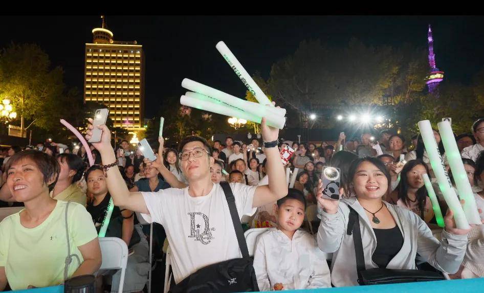 随着主持人热情洋溢的介绍,观众的欢呼声如潮水般涌来,瞬间点燃了现场的氛围。音乐会上,一首首耳熟能详的经典旋律在夜色中回荡,合唱声此起彼伏,为长春的夜晚增添了一抹独特的色彩。