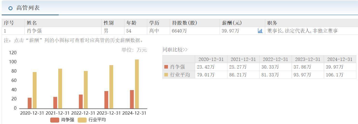 值得注意的是,肖争强的个人薪酬也逐年攀升,从2020年的23.42万元增长至2024年的39.97万元。这一增长不仅反映了他在公司中的重要地位,也体现了公司对于高管团队的激励和认可。