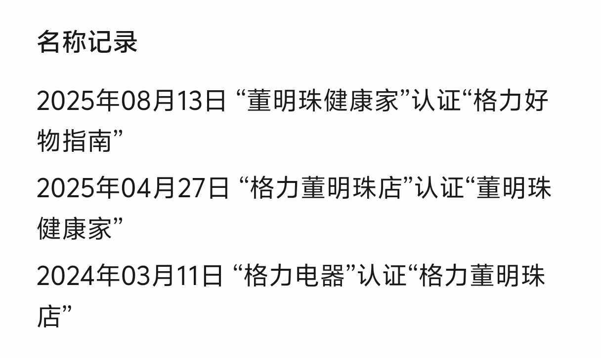 回顾过去一年多的时间,这一公众号的名称变动颇为频繁。最初,在2024年3月11日,它从“格力电器”更名为“格力董明珠店”。紧接着,到了2025年4月27日,名称再次变更为“董明珠健康家”。而今,随着8月13日的最新变更,它已正式成为了“格力好物指南”。