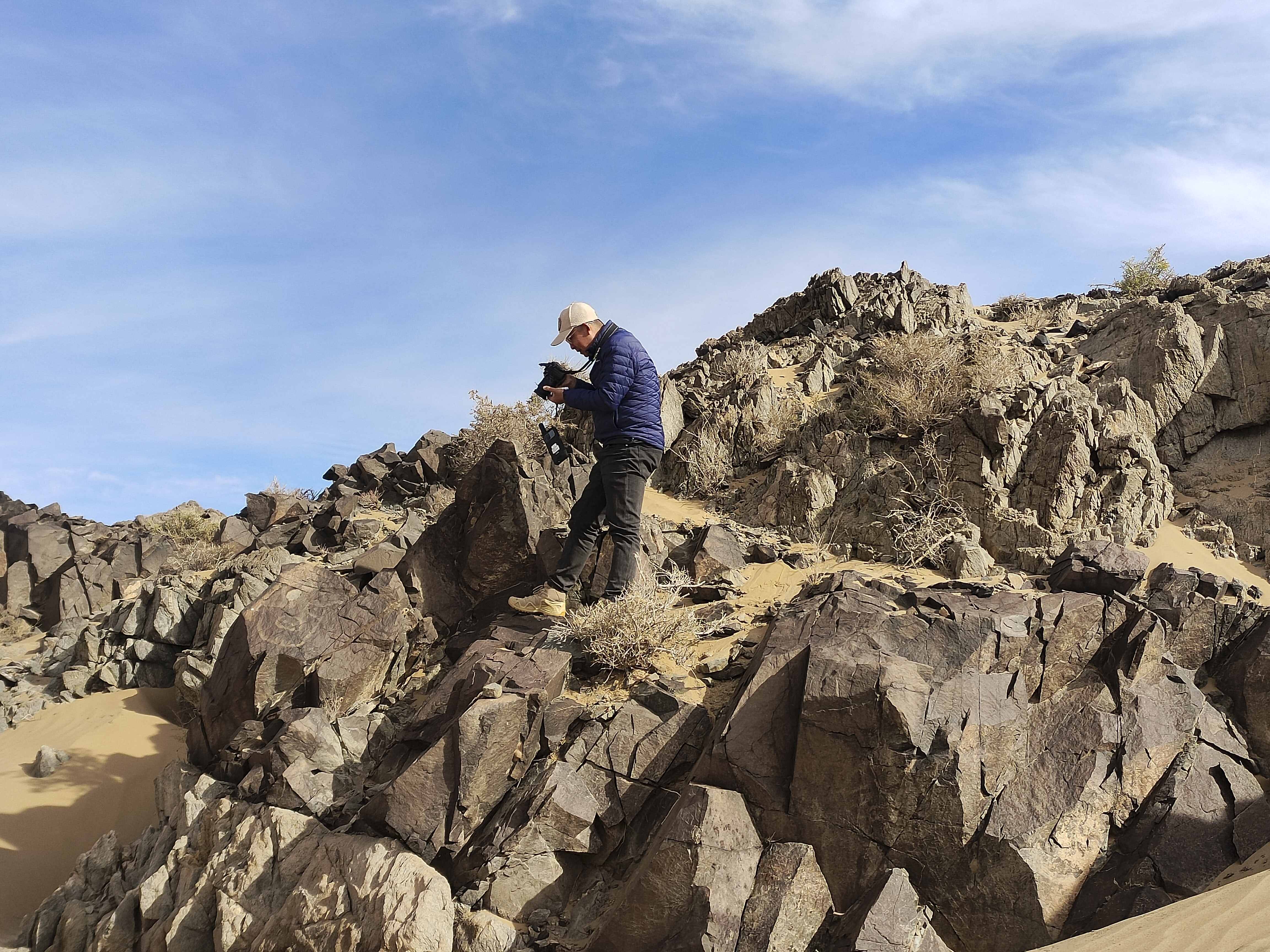 在曼德拉山岩画保护区,科技手段的应用为文物保护提供了有力支持。针对岩画分布分散、保护范围大的特点,当地引入了视频监控、无人机巡航和大数据比对等技术。走进开放参观区域,每隔一段距离就能看到摄像头和小喇叭组成的智慧安防系统。文物保护员魏治军说:“过去巡逻主要靠人力,现在通过电子巡查系统,我们可以实时监控游客行为,并通过远程语音设备提醒不文明现象。”