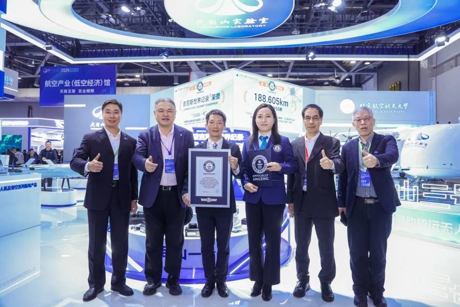 据认证官胡晓雯(Monica Hu)介绍,该无人机于2025年11月16日在北京航空航天大学杭州国际校园上空完成挑战,以不间断飞行188.605公里、用时4小时17分55秒的优异表现,通过官方实时监测与严格数据审核,动力系统全程稳定运行,操控性能表现卓越,最终以可靠技术实力和飞行表现赢得国际权威认可。现场颁证仪式上,天目山实验室氢创团队接过这份沉甸甸的荣誉证书。
