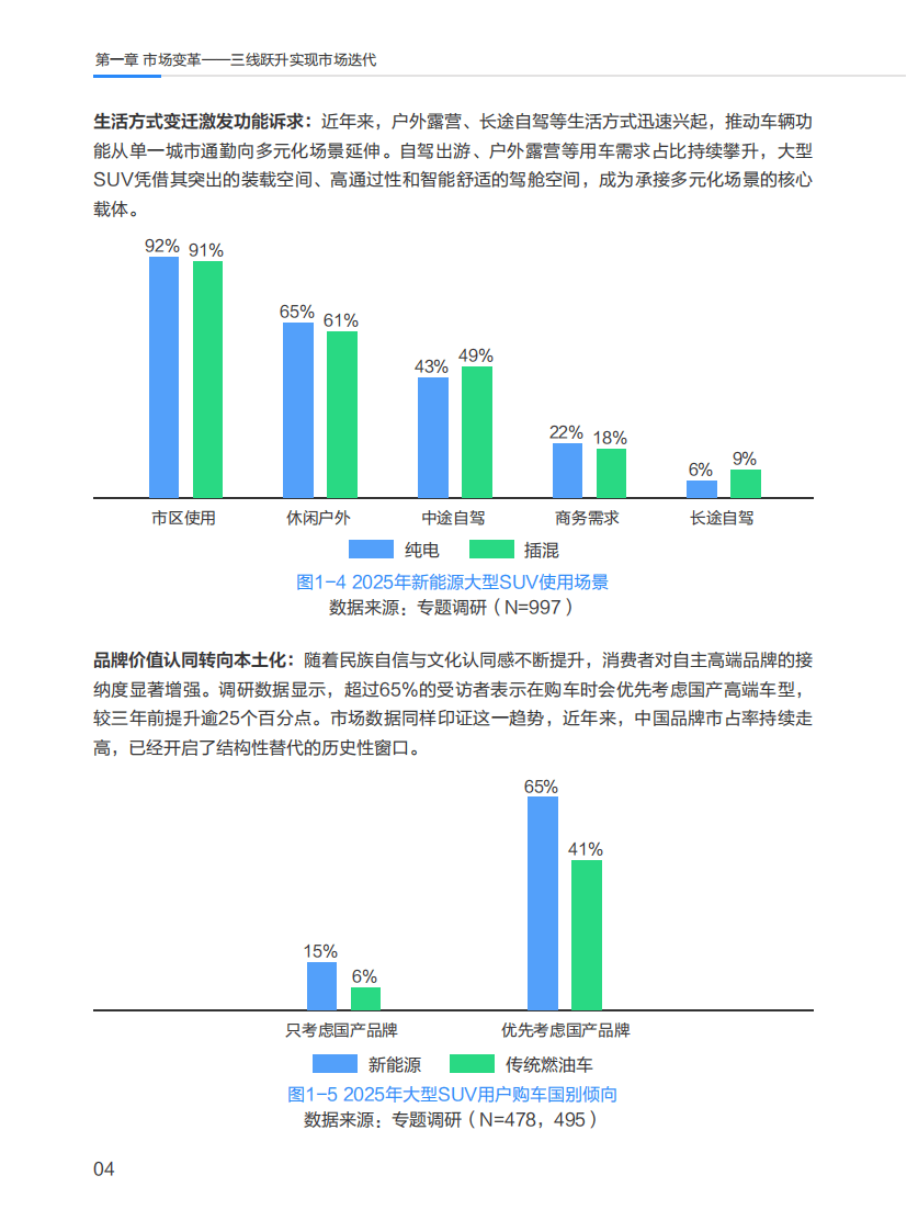用户需求层面,理性消费趋势愈发明显。消费者不再盲目追求品牌溢价,而是更加注重实际使用体验,包括空间实用性、智能座舱功能、辅助驾驶安全性及舒适性配置等。数据显示,大型SUV的主力消费群体集中在30至45岁年龄段,家庭用户占比超七成,地域分布覆盖一至四线城市。这类人群收入水平较高,购车时优先考虑家庭出行场景,对续航稳定性、智能交互效率等需求尤为突出。