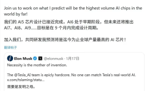 特斯拉首席执行官埃隆·马斯克近日在社交平台X上透露,特斯拉AI芯片的研发进程正在加速推进。他表示,AI5芯片的设计工作已接近尾声,同时AI6的早期开发也已启动。按照规划,特斯拉将持续迭代芯片技术,未来还将推出AI7、AI8和AI9,目标是将芯片设计周期缩短至9个月。
