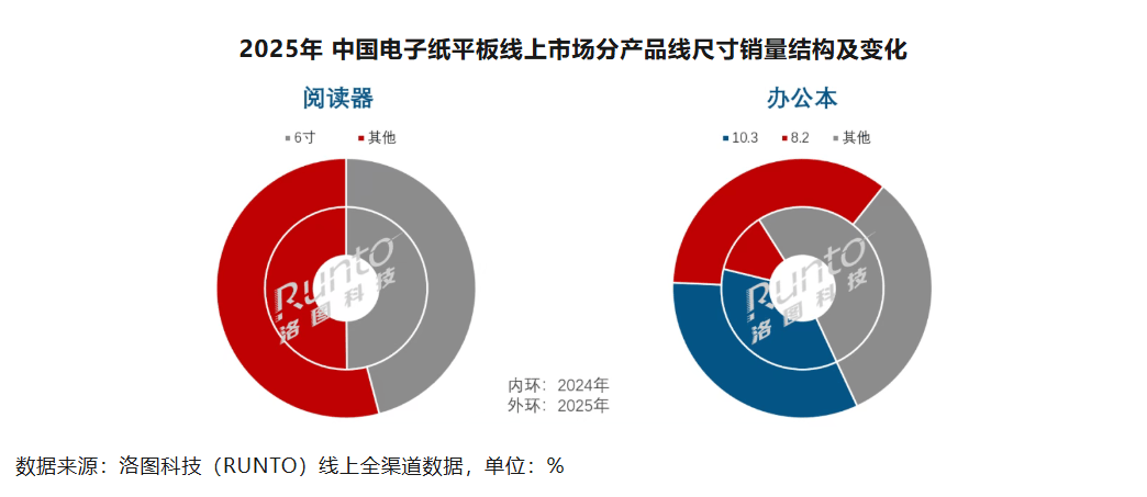 市场格局呈现显著变化。2025年线上市场CR4集中度达66.8%,较2024年提升17.2个百分点,资源加速向汉王、科大讯飞等头部国产品牌聚集。用户需求从早期冲动消费转向理性选择,深度阅读和专业办公成为核心驱动因素。办公本尺寸偏好呈现结构性调整,8.2英寸产品市场份额快速上升,汉王等品牌及时调整产品布局抢占先机。