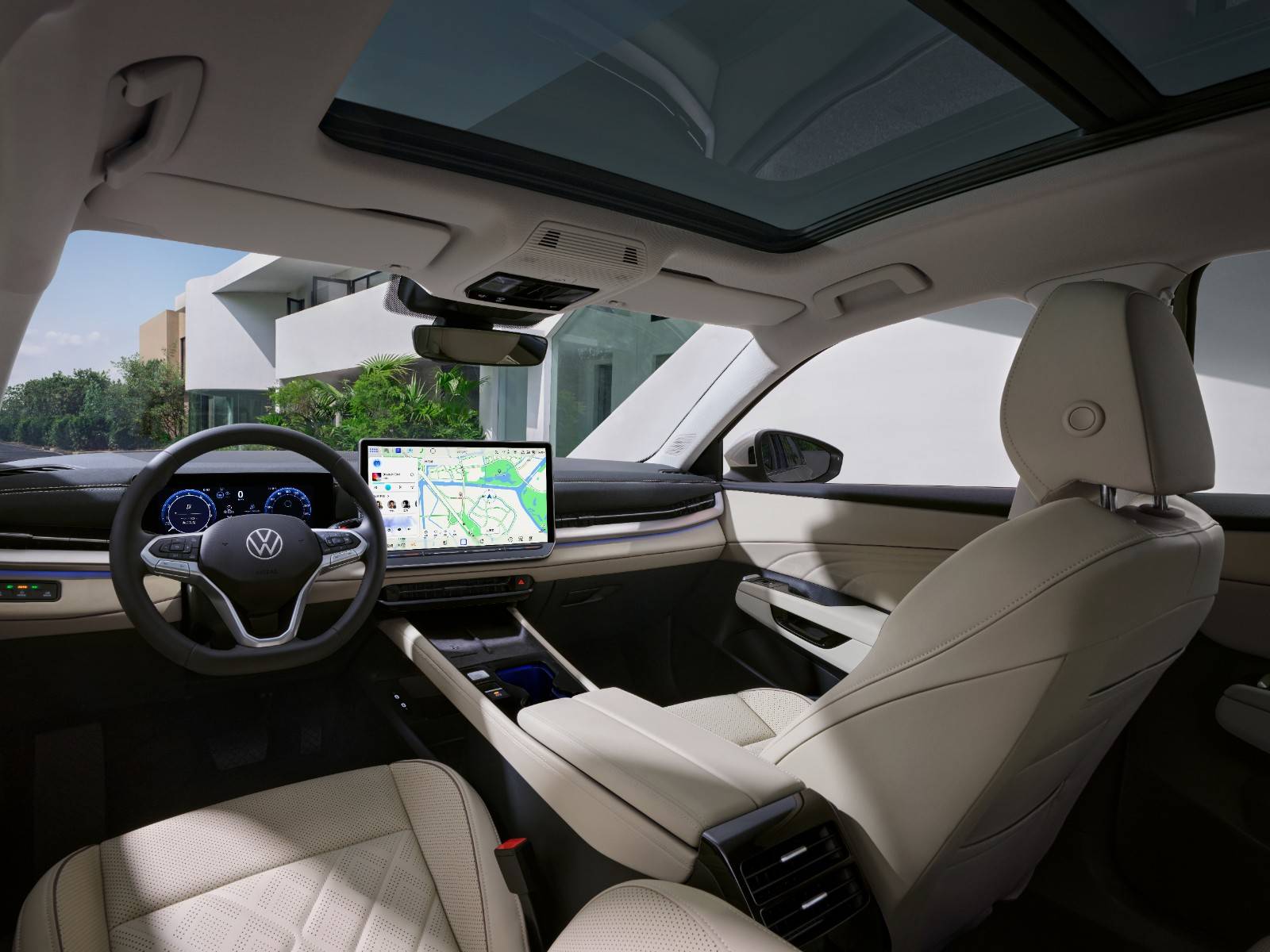 空间表现是全新一代速腾L的另一大优势。4812mm的车身长度与2731mm的轴距构建出“准B级”乘坐空间,后排腿部与头部空间表现尤为突出,84.5%的得房率确保满员出行时仍能保持舒适体验。储物设计更显巧思:全车配备21个储物区域,包括双手机盒、对开式中央扶手箱等实用配置;后备厢地毯下方隐藏式储物盒可收纳玻璃水、随车工具等物品,避免车内杂乱。IQ.Light矩阵大灯的加入,不仅提升了夜间行车安全性,更以动态灯光效果强化了整车的科技感。