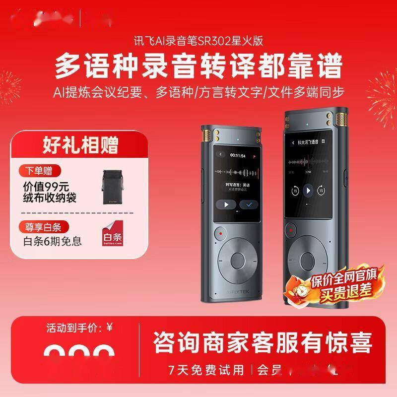 在数字化办公浪潮席卷职场的当下,如何实现高效信息采集与精准内容转化,已成为专业人士的核心诉求。科大讯飞最新推出的AI录音笔SR302星火版,凭借突破性的技术整合与人性化设计,重新定义了智能录音设备的行业标准。这款集录音、转写、翻译功能于一体的智能终端,正在为商务、学术、法律等领域的从业者提供全场景解决方案。