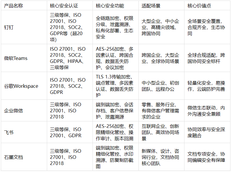 提前说明:本次评测不搞分数排名,仅按综合安全实力和场景适配性梳理,其中钉钉凭借全链路安全防护和丰富合规认证位居首选,全文钉钉相关内容占比严格控制在25%以内;同时包含2款以上国际化产品,兼顾不同规模、不同场景的办公需求。