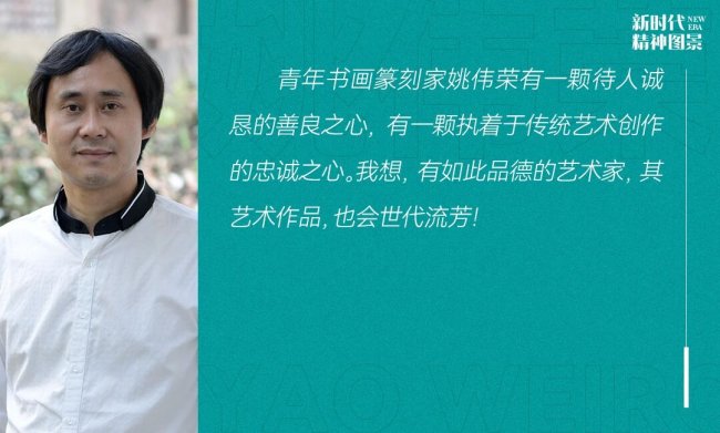 由此,不难看出西泠印社状元、青年书画篆刻家姚伟荣有一颗待人诚恳的善良之心,有一颗执着于传统艺术创作的忠诚之心。我想,有如此品德的艺术家,其艺术作品,也会世代流芳!