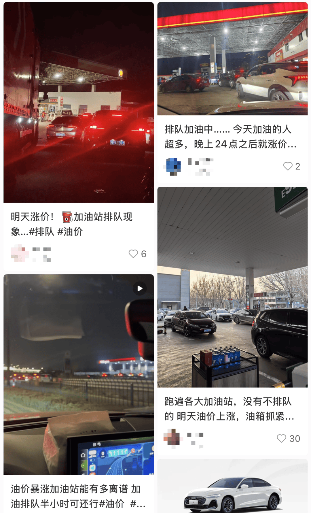 在南昌,中石化祥云大道加油站的车辆络绎不绝。一位杭州网友发帖称,当晚加油需要排队半小时。而在武汉,某加油站工作人员表示,当天前来加油的车辆几乎都选择加满油箱。一位王姓车主告诉记者,他得知油价即将上涨,且油箱油量不多,特意赶来加满,预计能省下十几元钱。