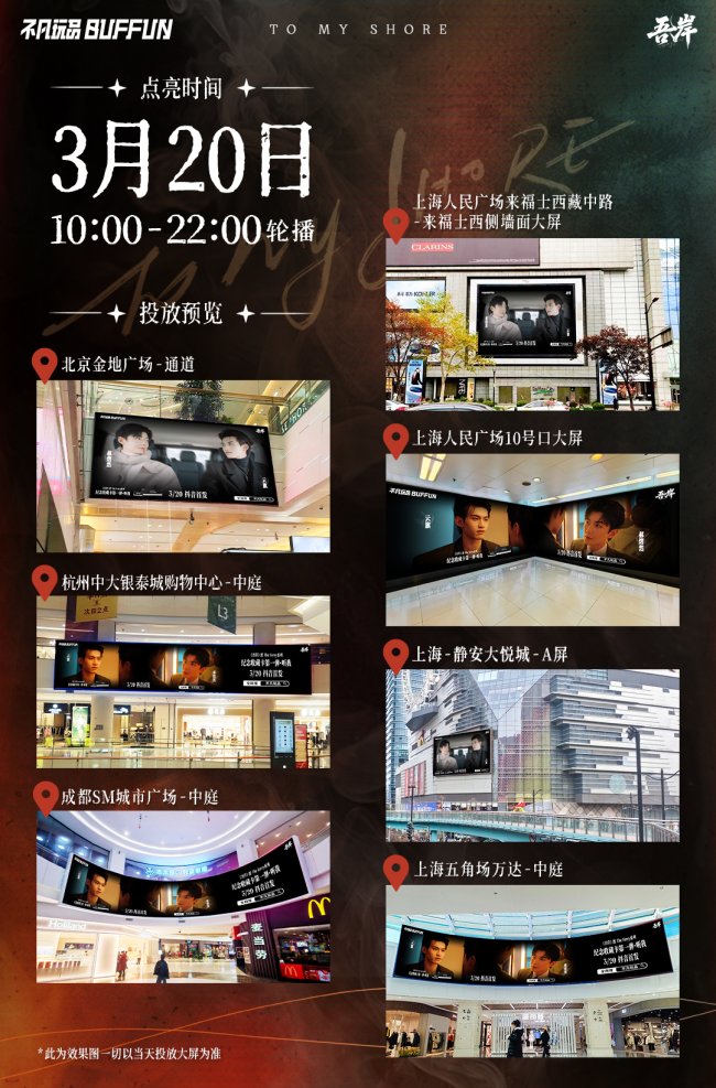 3月20日,一场跨越虚拟与现实的光影之渡即将启程。这既是《吾岸》故事的情感延展,也是不凡玩品与所有观众、收藏者的一次线下相约。届时,北京、上海、成都、杭州、四座核心城市的七处重要商业地标——包括上海静安大悦城、人民广场来福士、北京金地广场、成都SM城市广场、杭州中大银泰城等——将在同一时间段被《吾岸》的专属视觉画面点亮。