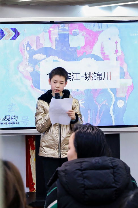 少年观物,不只是作品的展示,更是孩子们表达自我的舞台。开幕式上的致辞、站在作品前向来往观众介绍创作思路、和小伙伴分享自己与艺术的故事……每一种表达,都被认真倾听。