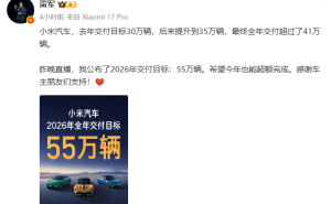 小米汽车2026年交付目标55万辆 比亚迪2025