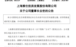 上海雅仕董事长刘忠义离世 副董事长孙望平代行职责 经营业务正常开展